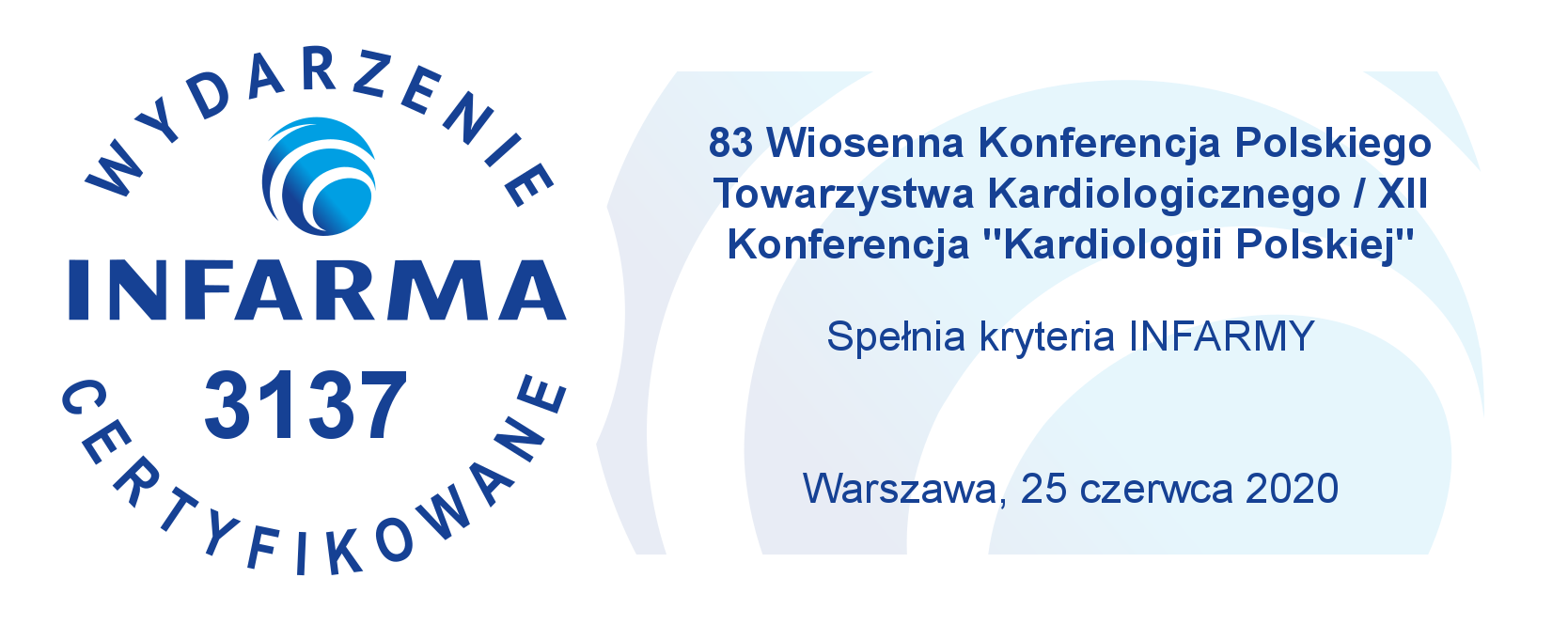 Ze względu na sytuację epidemiologiczną w kraju zdecydowaliśmy, że tegoroczna 83 Wiosenna Konferencja Polskiego Towarzystwa Kardiologicznego/XII Konferencja „Kardiologii Polskiej” odbędzie się w trybie online we wcześniej zaplanowanym terminie 25-26 czerwca 2020 r.